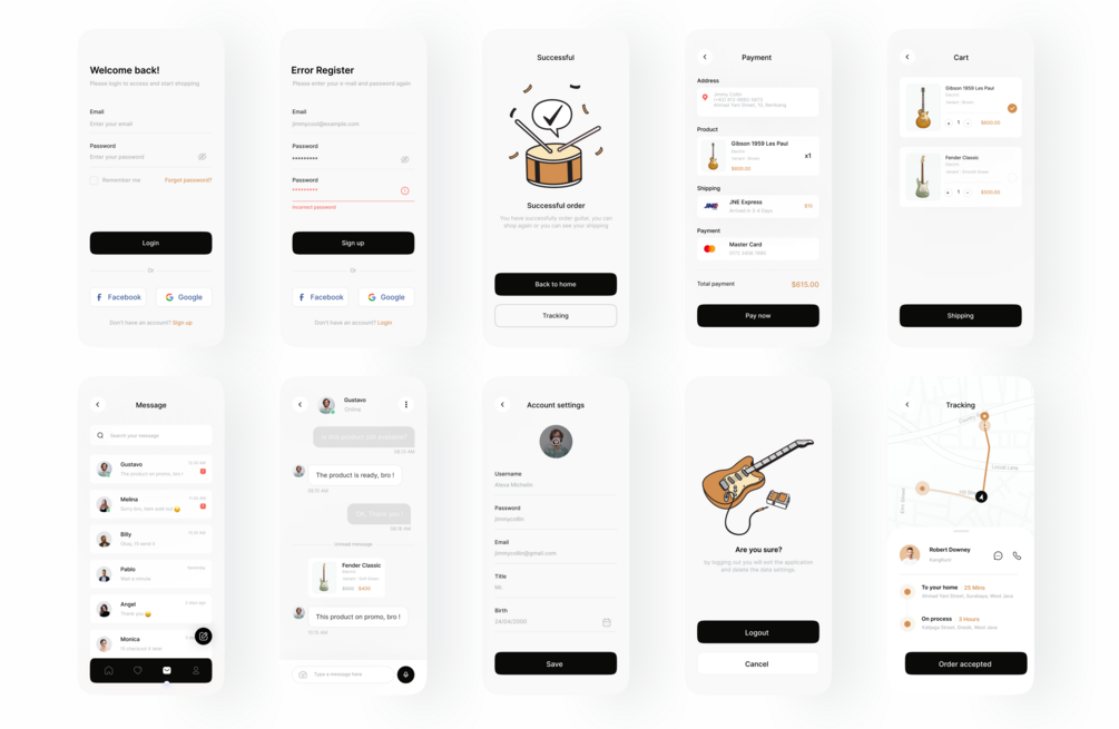 At Tokogitar, we invite you to embark on a musical journey through our mobile e-commerce UI kit. Let your creativity harmonize with the digital realm as you create an unforgettable shopping experience for your customers. Join us in revolutionizing the way people explore and purchase their favorite musical instruments and accessories. Together, let's strike the perfect chord in the world of online commerce.
