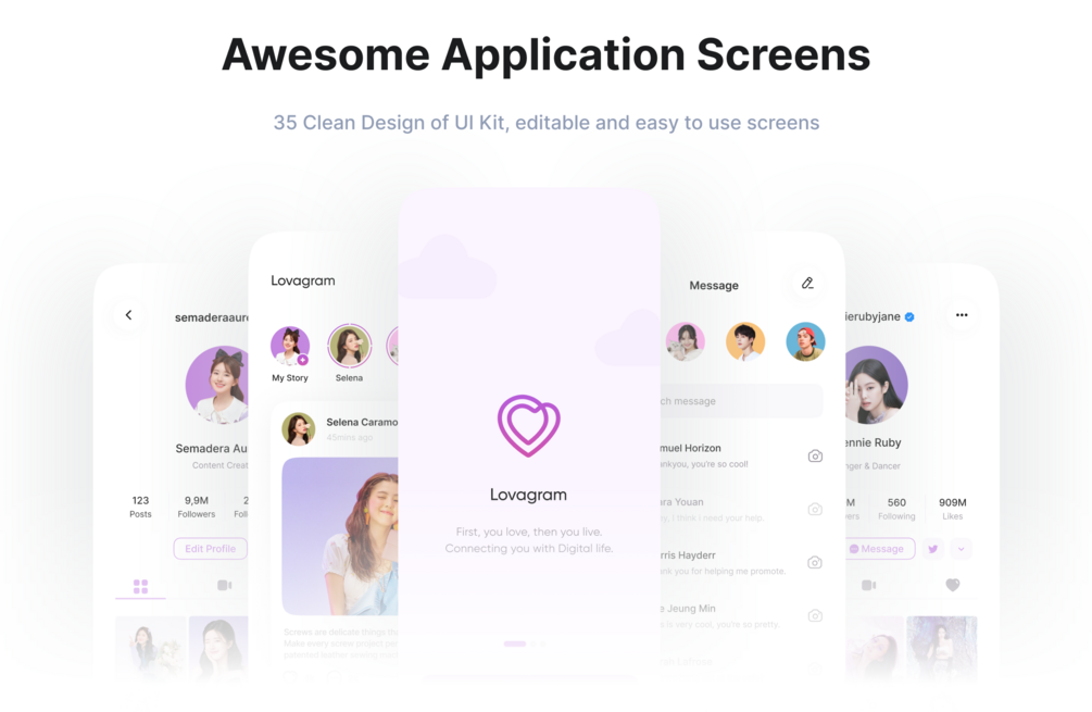 Introducing our latest creation, "Lovagram - Mobile Social Media App UI Kit" 📱